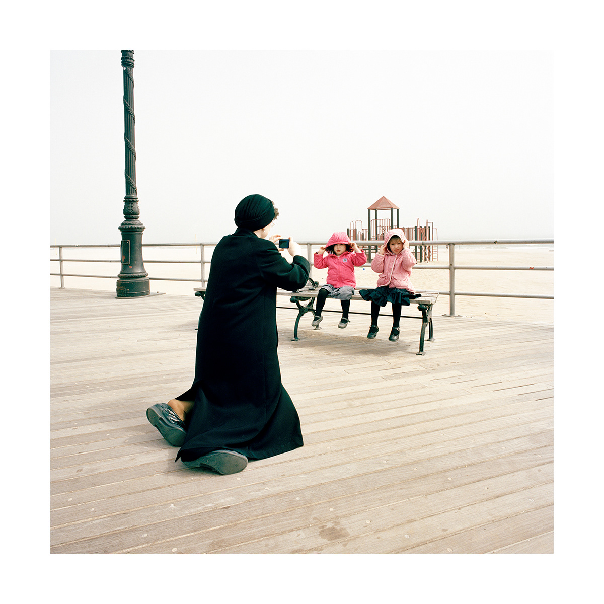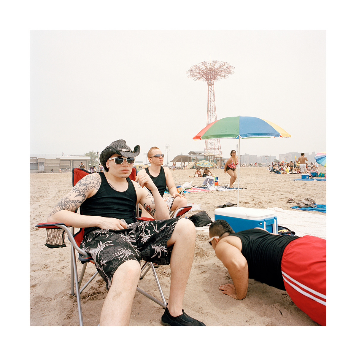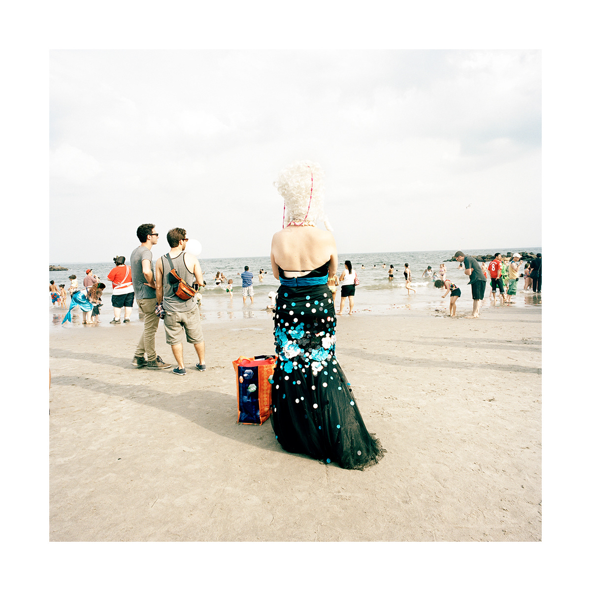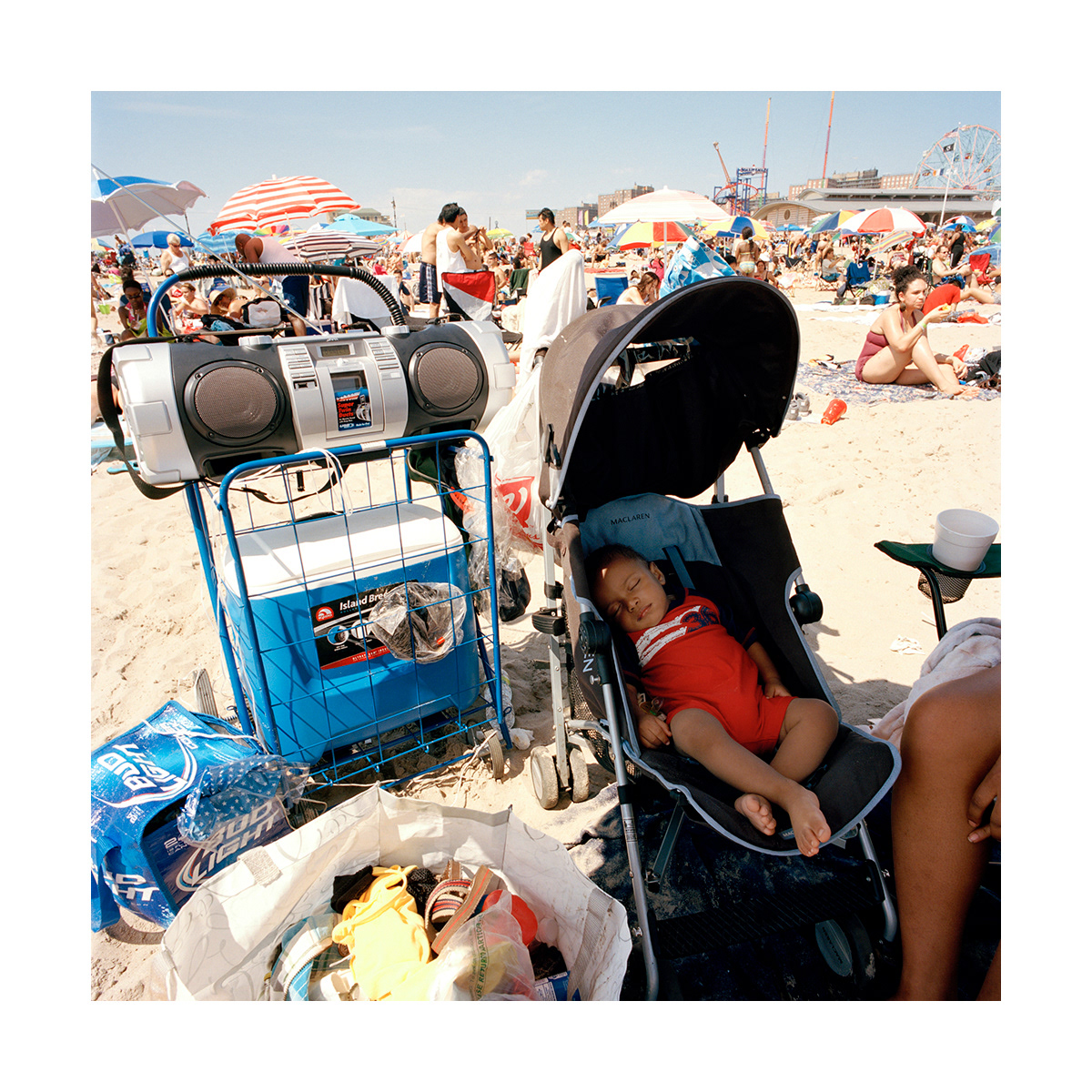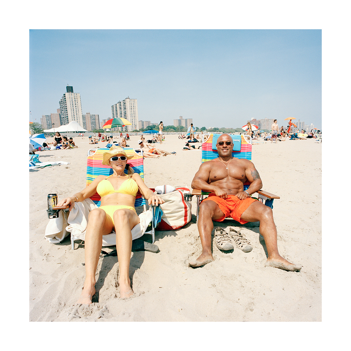 New York. Été 2011. De avril à septembre, j’ai photographié les new-yorkais sur la plage qui s’étend au sud de Brooklyn, entre Brighton Beach et Coney Island. Tels les animaux qui au crépuscule convergent vers le dernier point d’eau non asséché, les habitants des diverses communautés du Queens, de Harlem, du Bronx, de Brooklyn et de Manhattan affluent durant les mois les plus chauds de l’année vers cette bande de sable située au bord de l’océan Atlantique. La plage, lieu populaire, lieu de promiscuité, devient alors un espace unique d’interactions sociales, un lieu de haute sociabilité où les gens viennent pour vivre ensemble idéalement une communauté de plaisir, de bien-être face à la mer, loin des affres de la ville. Un état vital s’y recrée durant l’été, avec l’envie de retisser des liens de solidarité fragilisés voir dissous dans la vie quotidienne le reste de l’année.